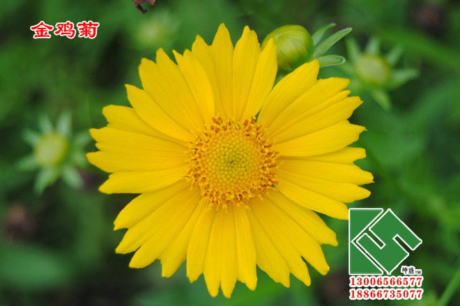 用途:金鸡菊花朵繁盛鲜艳,植株生长健壮,栽培繁殖容易,为很好的观花常绿植物。金鸡菊花期长达4个月,可以大面积种植打造唯唯美花海景观。春夏之间,花大色艳,常开不绝。还能自行繁衍,是好的疏林地被。可观叶,也可观花。在屋顶绿化中作覆盖材料效果也好,还可作花境材料。也可在草地边缘、向阳坡地、林场成片栽植,开花不绝。其枝、叶、花可供艺术切花用,用于制作花篮或插花。