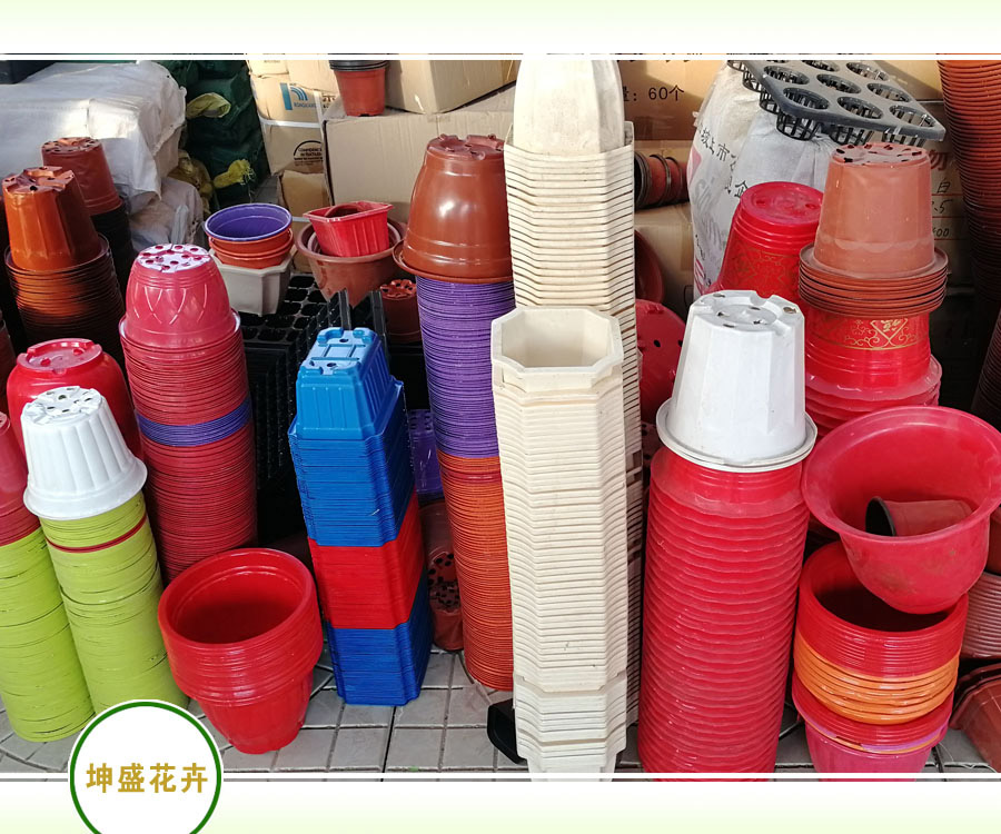 坤盛公司批发各种花卉花盆,塑料花盆,泥塑花盆等