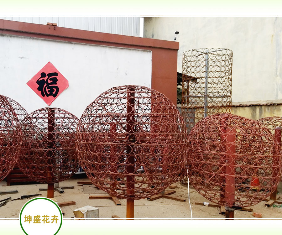 坤盛公司制作批发园艺花球、铁艺花球、PVC花球等各种园林景观制品。